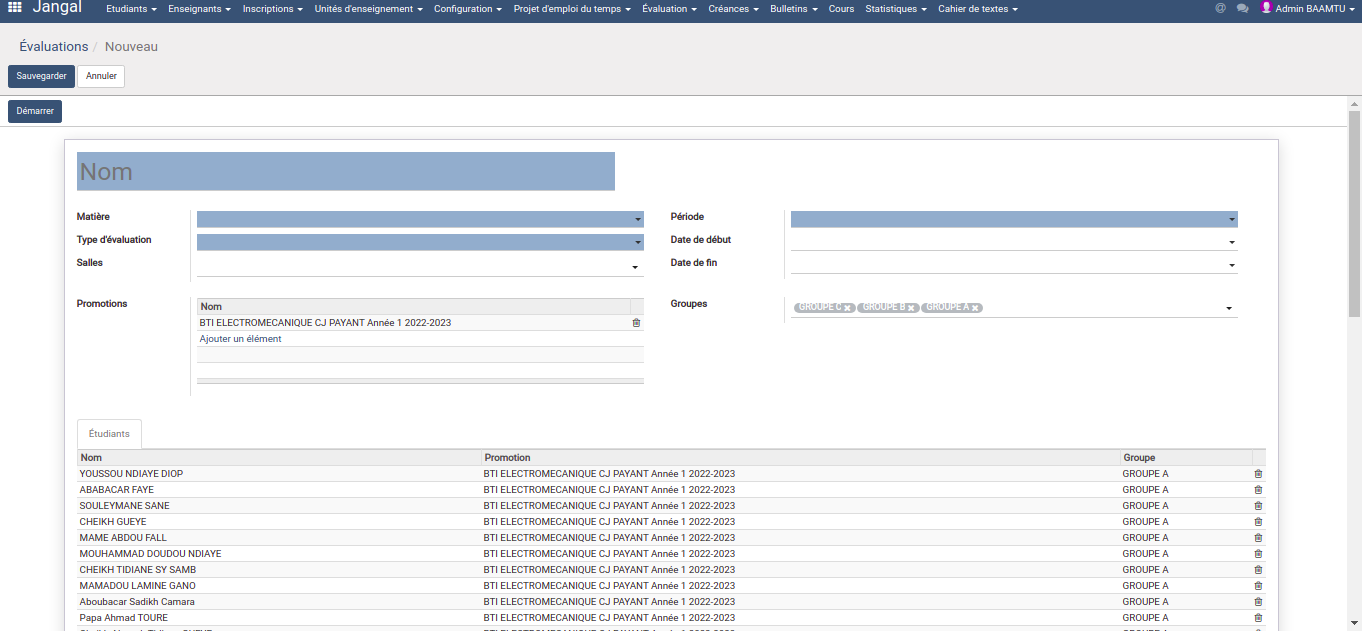 Sur la base de production du CFPT pour renseigner les notes de la promotion BTI ELECTROMECANIQUE CJ PAYANT Année 2 2022-2023 la liste de la classe ne s'affiche pas sur l'onglet étudiant.