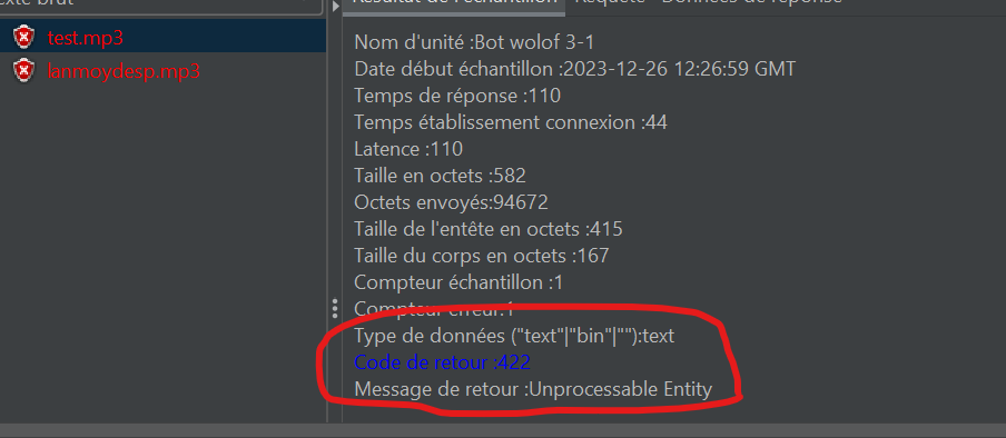 Test Automation Chatbot Wolof, ne passe pas et génère comme code d'erreur 422.