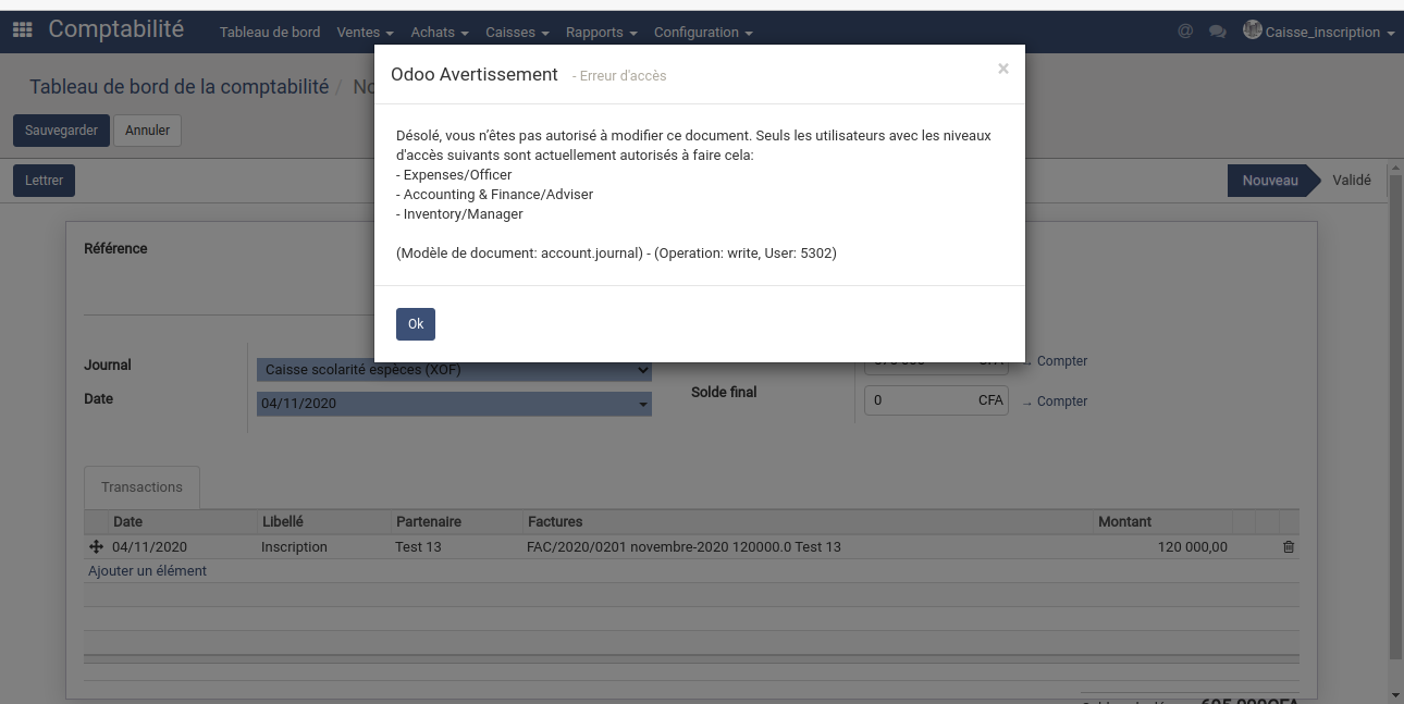 4-aller sur le journal caisse scolarité espèce