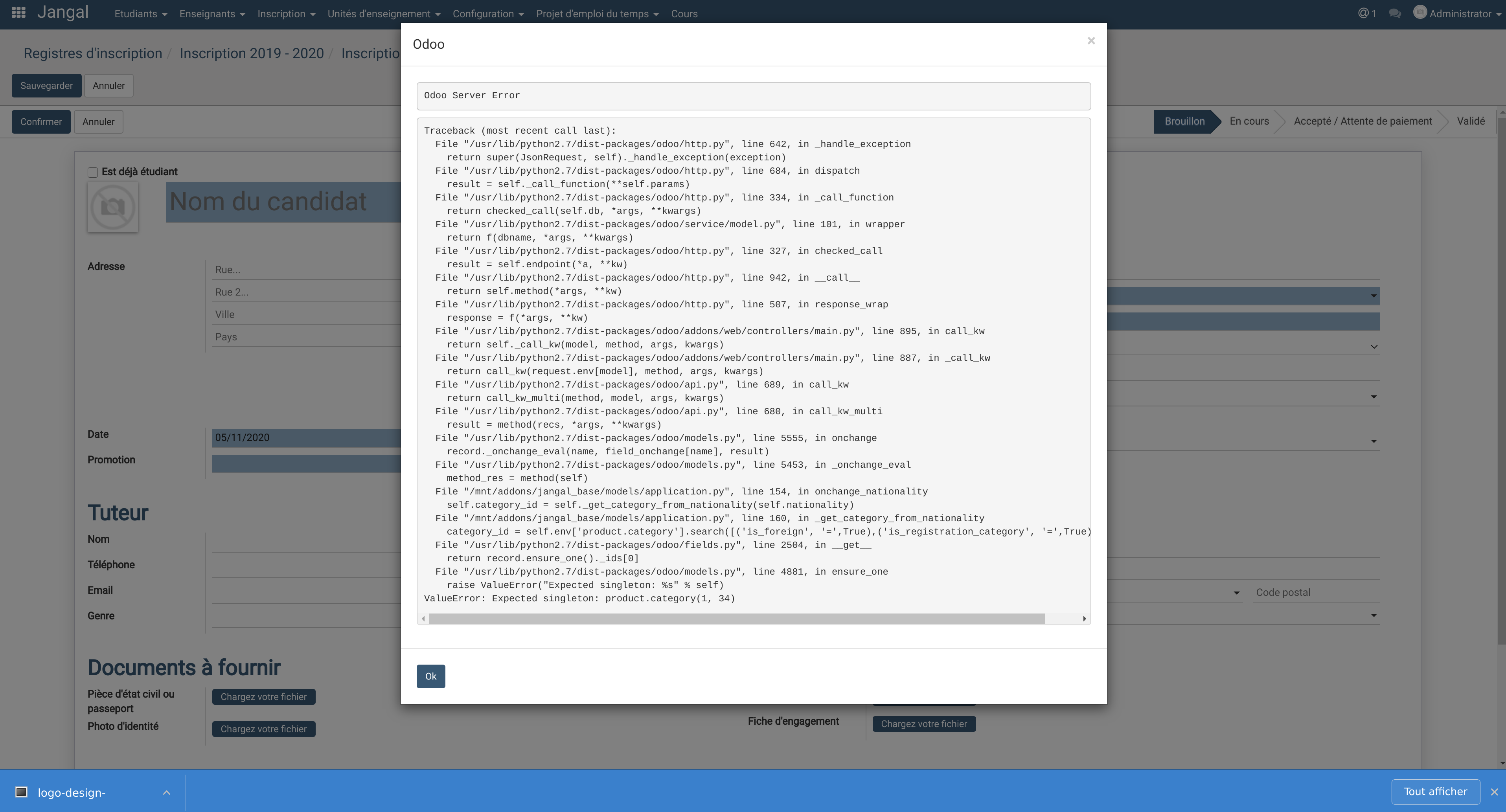 2) Aller dans la liste des registre et choisir le premier registre (Inscription 2019 - 2020)