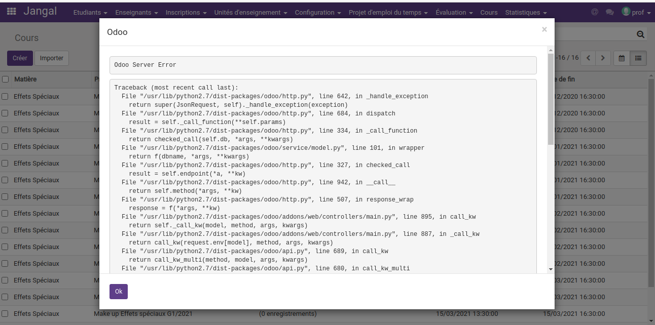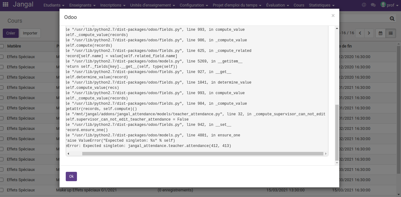 Résultat attendu: lorsqu'on clique sur un cour déjà créer on doit pouvoir pointer les étudiants à partir du formulaire de pointage des étudiants